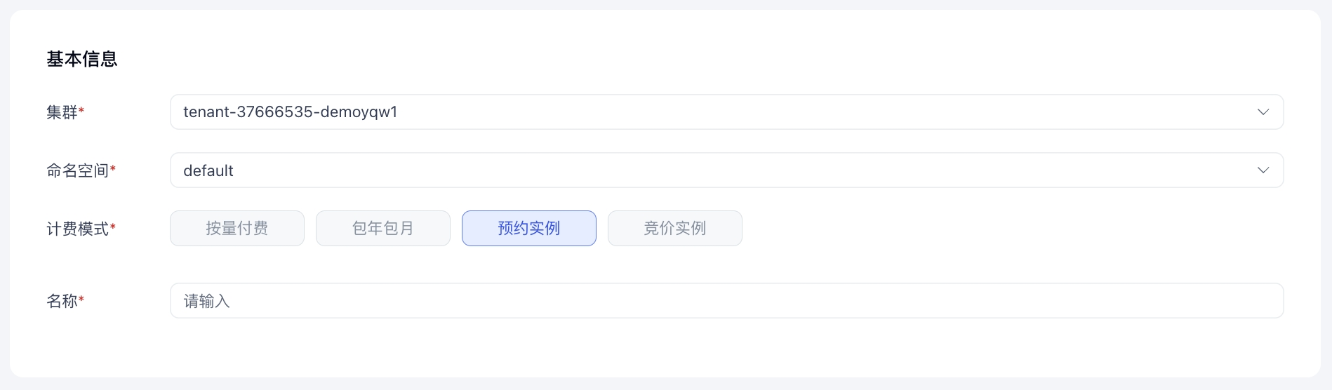 | 目标节点池 | 选择预约节点池,预约节点池资源通过预约实例模式计费。 |