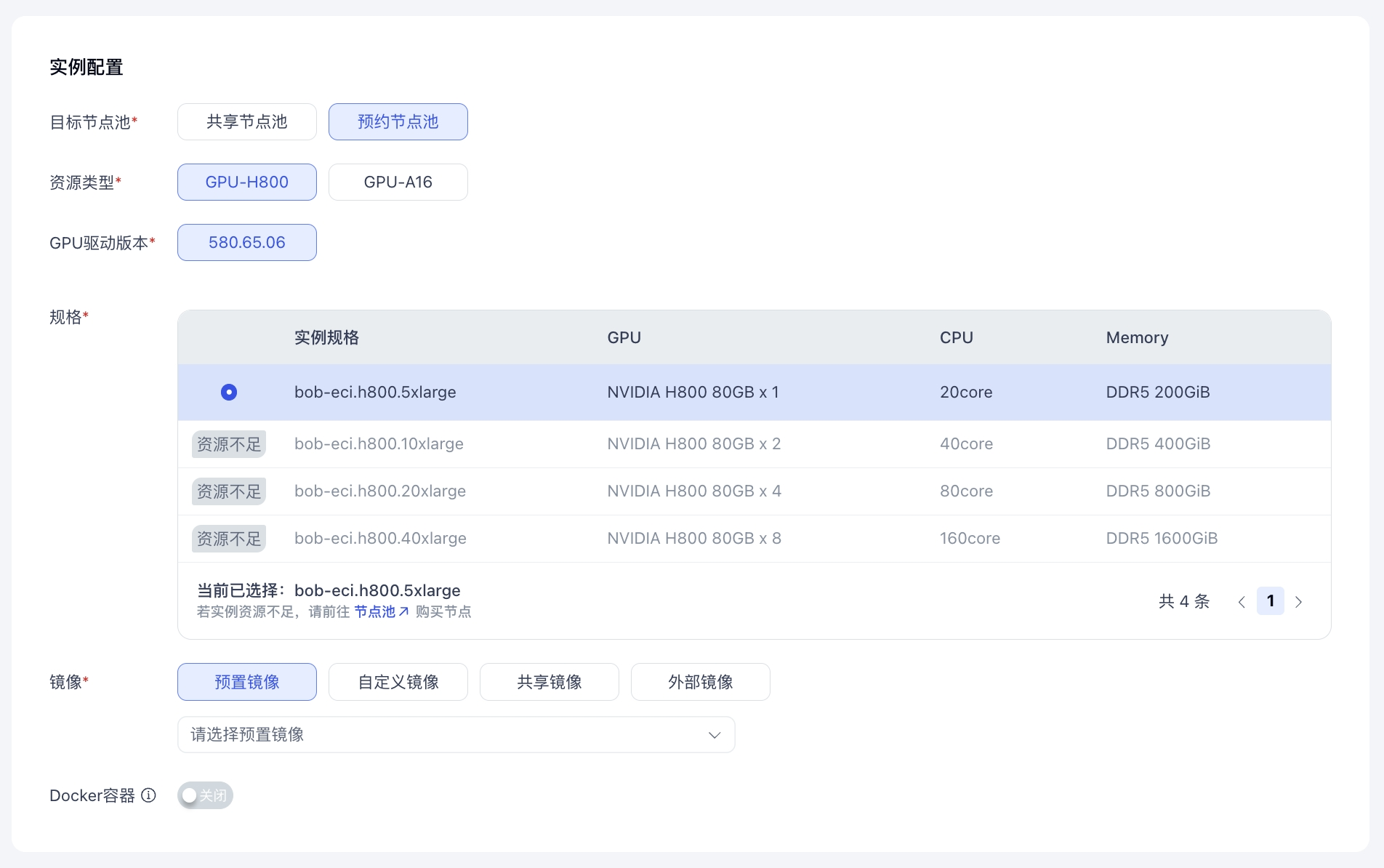 | 规格 | 选择不同GPU或CPU资源的规格 |