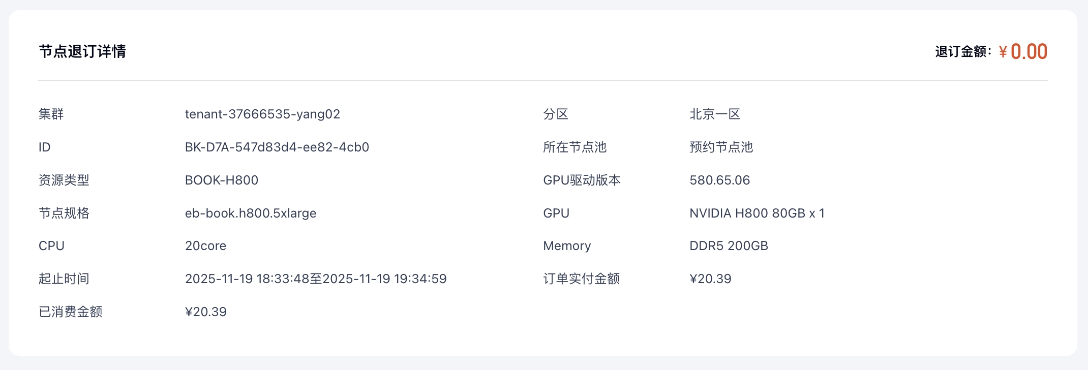2. 若节点上已存在包年包月开发机资源,退订节点会导致原开发机不可用。