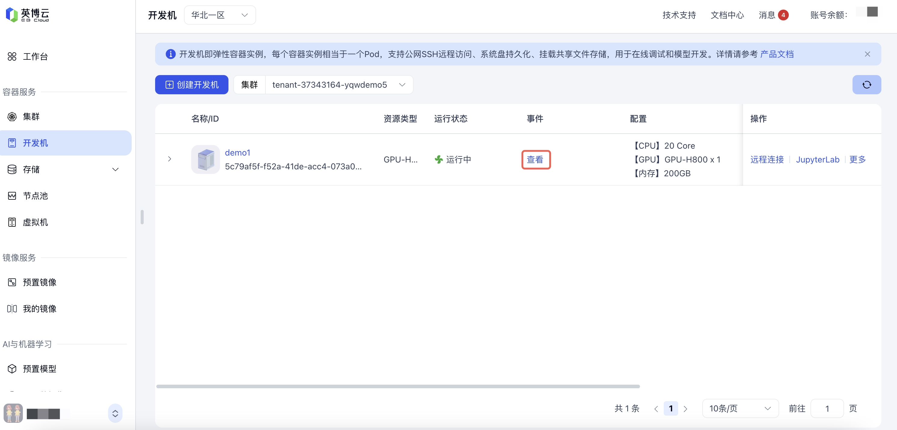 在页面左侧导航栏,选择 开发机,进入开发机列表页面。