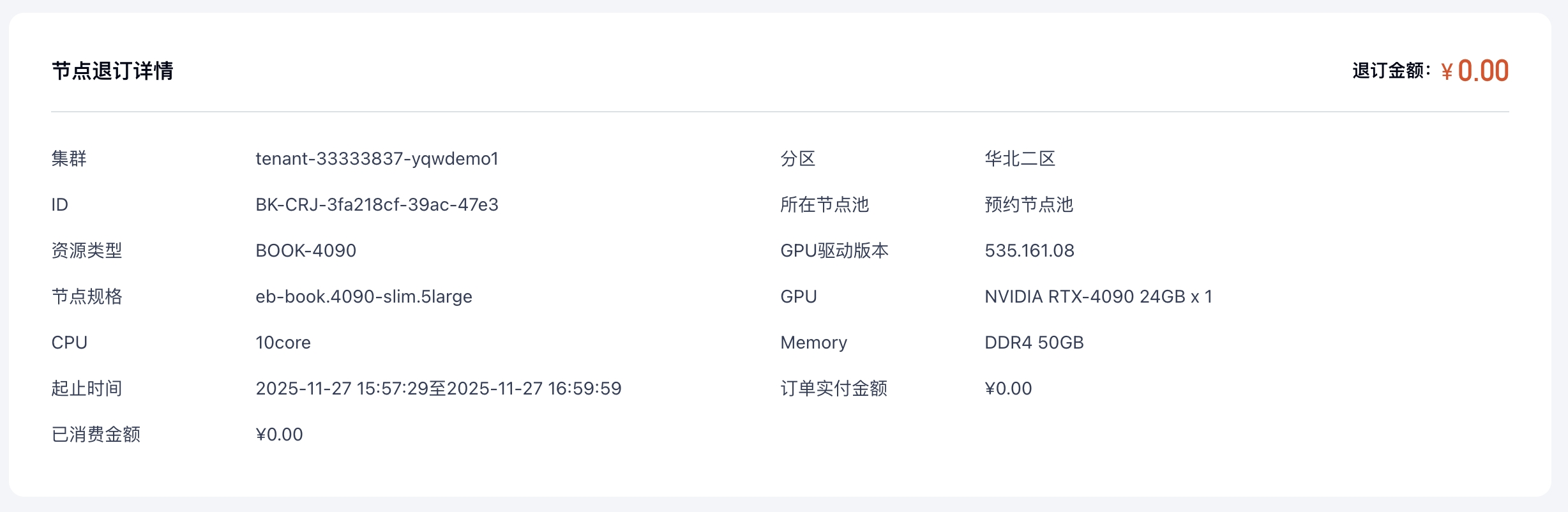 2. 若节点上已存在预约实例开发机资源,退订节点会导致原开发机不可用。
