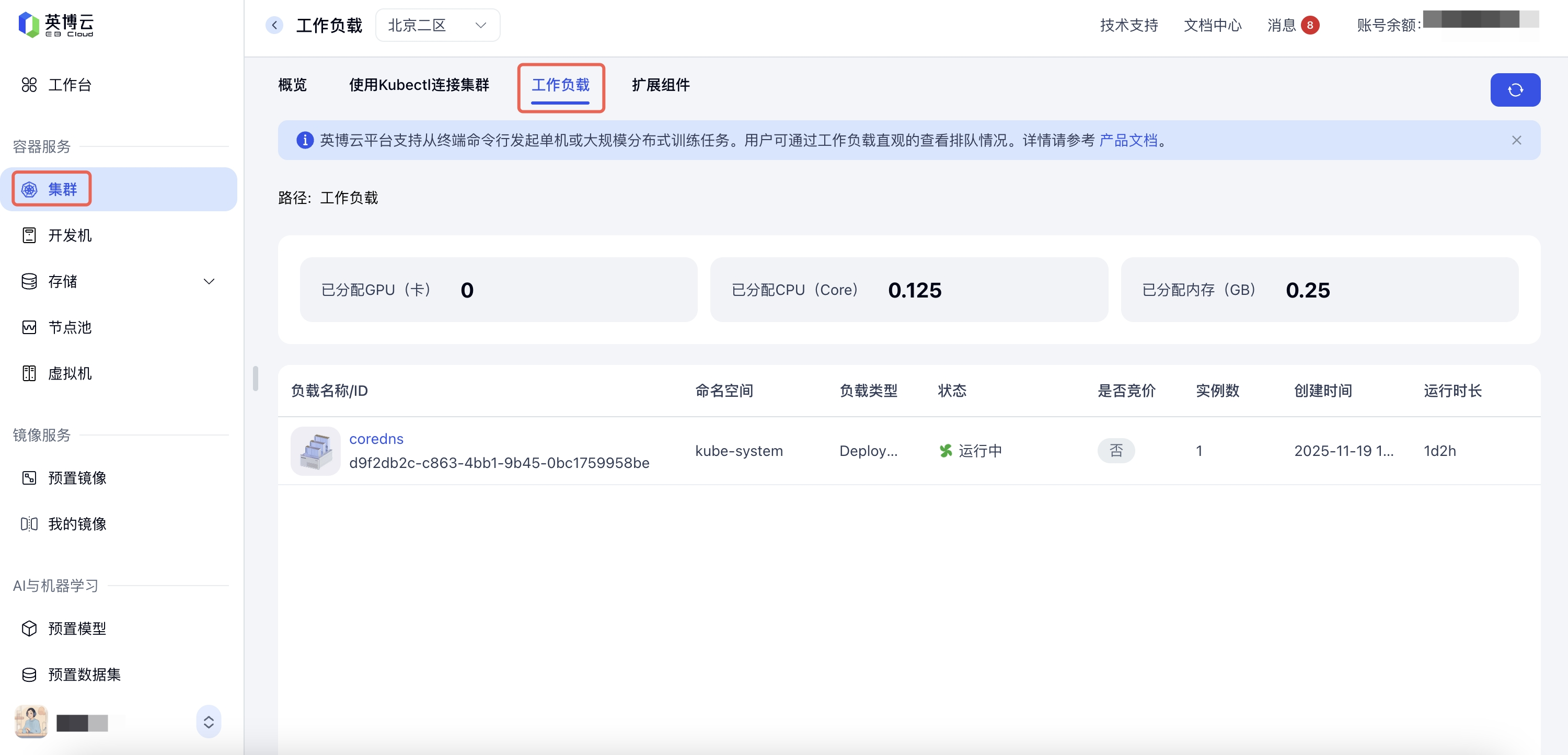 - 查看训练任务的工作负载,可前往 集群详情 > 工作负载 查看。