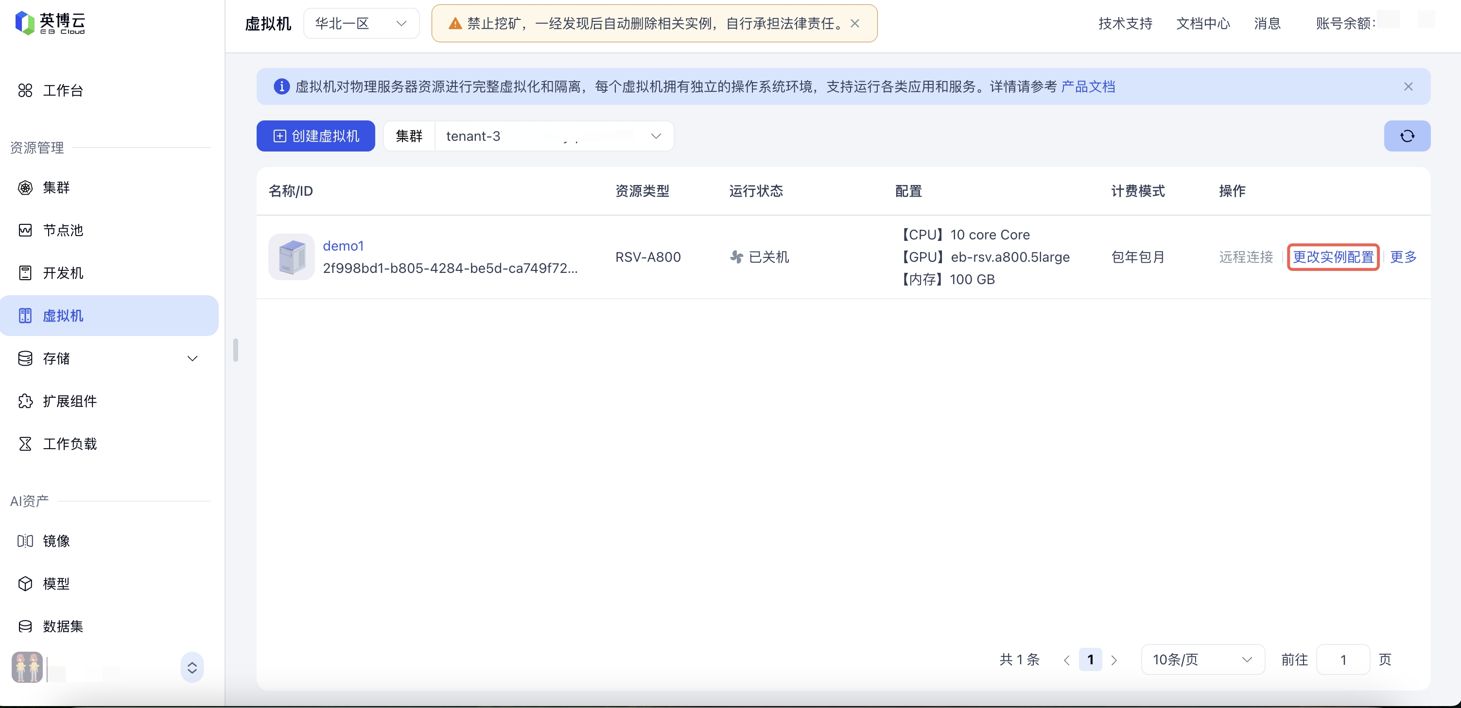 ,进入虚拟机列表页面。
